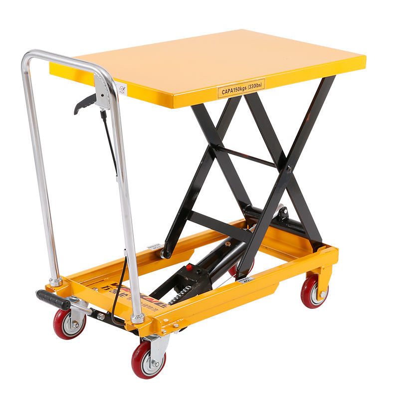 150 কেজি লোড ম্যানুয়াল ট্রলি কাঁচি লিফট হাইড্রোলিক লিফট টেবিল