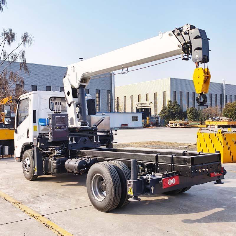 একটি ট্রাক মাউন্টেড ক্রেনের সুবিধাগুলির মধ্যে রয়েছে ভাল ম্যানুভারেবিলিটি, দ্রুত স্থানান্তর এবং উত্তোলন ও পরিবহনের কাজগুলিকে একীভূত করার ক্ষমতা, যার ফলে সম্পদের ব্যবহার উন্নত হয়। এর অসুবিধা হল যে এটি কাজের সময় সাপোর্ট লেগের প্রয়োজন হয় এবং খাড়া, নরম বা কাদা ভূখণ্ডে কাজ করার জন্য উপযুক্ত নয়। এর উত্তোলন কর্মক্ষমতা একটি ট্রাক ক্রেনের মতো ভাল নয়। অন-বোর্ড ক্রেন বিভিন্ন সহায়ক সরঞ্জাম লোড করতে পারে, যেমন কাঠের গ্র্যাব বালতি, ঝুলন্ত ঝুড়ি, ইট ক্ল্যাম্প ইত্যাদি, মাল্টি-সিন অপারেশন অর্জনের জন্য।
